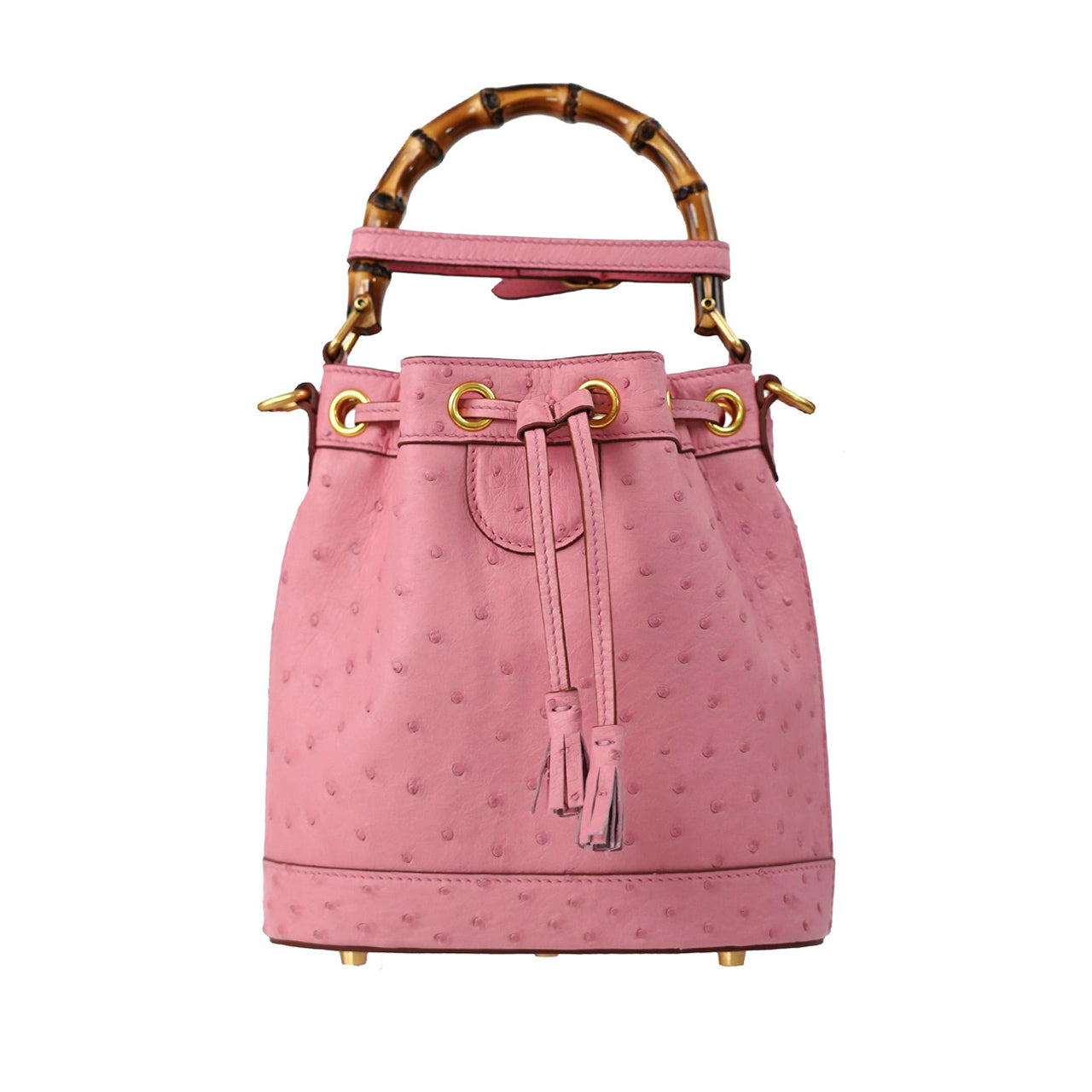 [PD1075] Handmade genuine Orstrich leather bucket bag bamboo style 19cm can fit cp long strap shoulder crossbody sling handbag PD1075